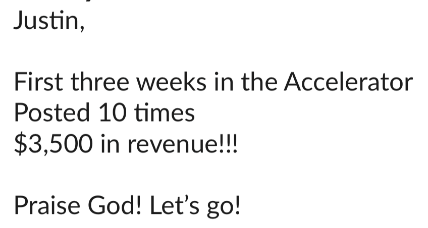 Thirty days later, he collected $16,625. No ads. No big platform. Just a clear offer built from the impact he was already producing.